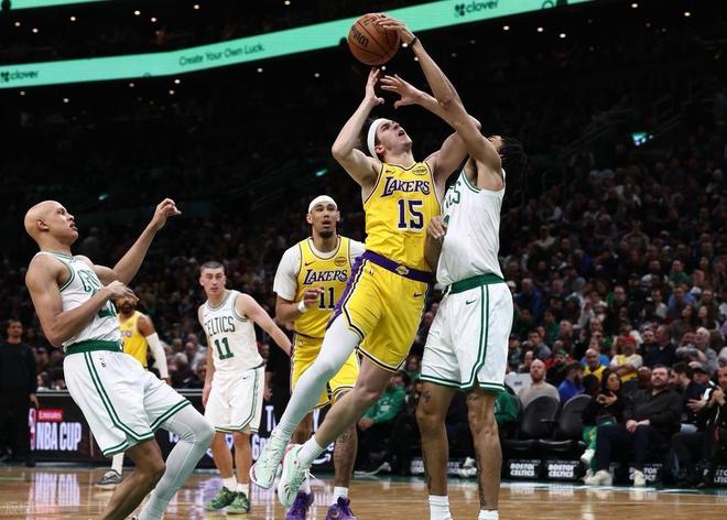 北京时间12月6日,NBA常规赛,湖人客场挑战凯尔特人。本场比赛之前,湖人16胜5负排名西部第2,9胜2负的客场战绩,联盟仅次于雷霆队。东契奇和里夫斯二人,进攻火力拉满,作为联盟场均得分最高的二人组,东契奇场均35分看起来还好,但里夫斯场均29分就有点夸张了,他甚至只是一个落选秀。而老詹本赛季在得分方面,似乎有些力不从心了,但他的组织串联依旧是联盟顶级,在场就能起到积极作用。另一边的凯尔特人队,本场比赛之前,以13胜9负的战绩排名东部第5,虽然塔图姆基本报销,球队又在今夏,损失了这么多优质角色球员。